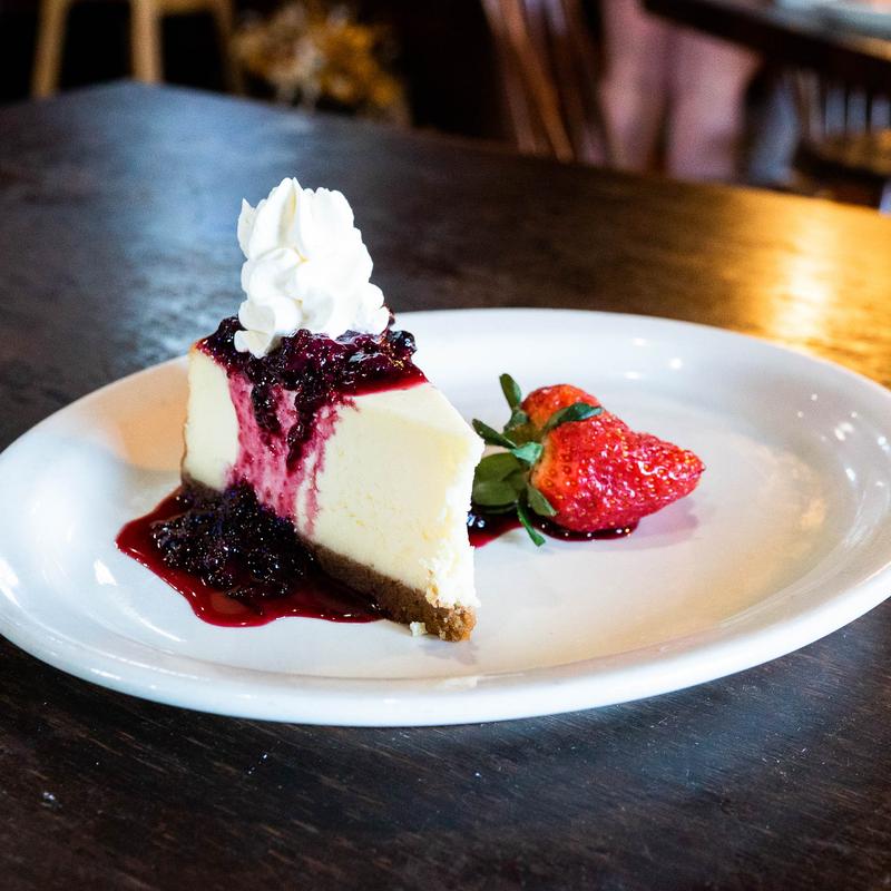 Rich New York-style cheesecake with a graham cracker crust, topped with a sweet berry compote.
