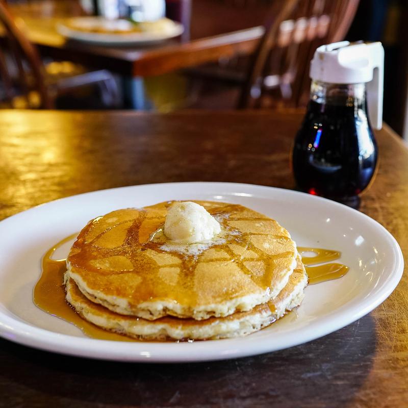 Golden, crispy on the outside, fluffy on the inside. Served with butter and warm syrup.